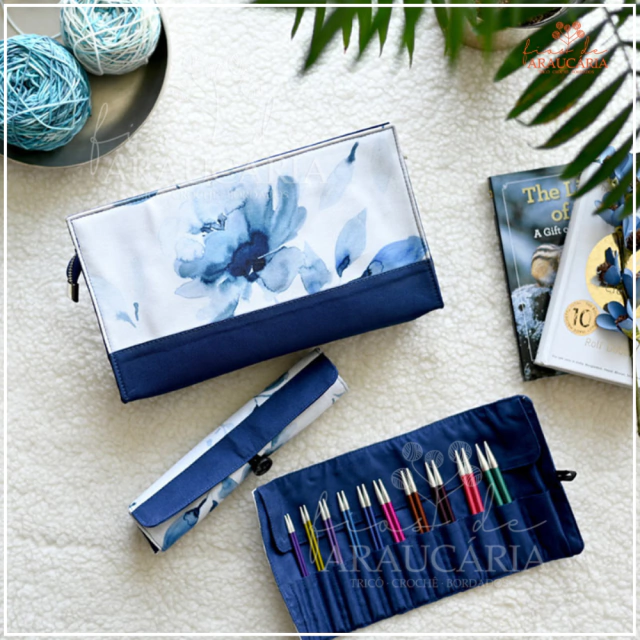 Bolsa para Projetos com Estojos de Enrolar Knitpro (Flor)