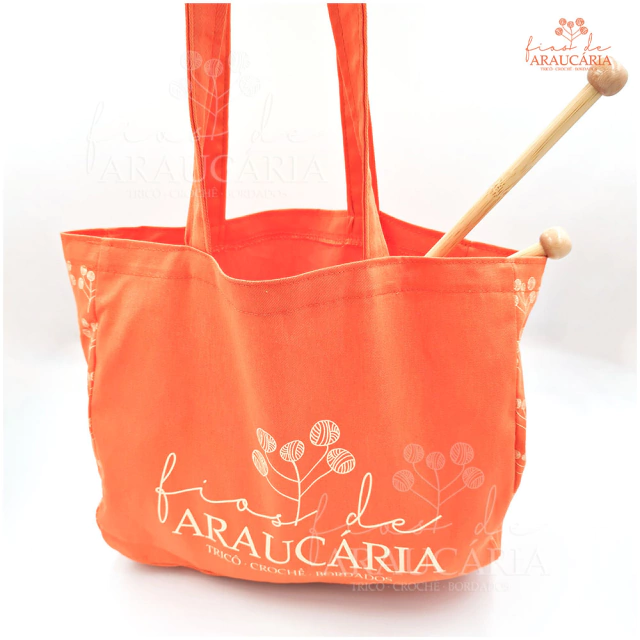 Sacola em Brim, personalizada com o Logo da Fios de Araucária, para você carregar seus projetos e acessórios.