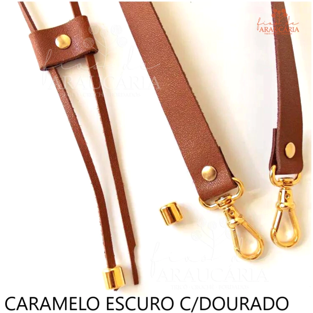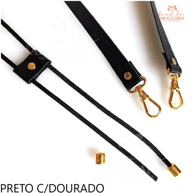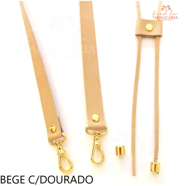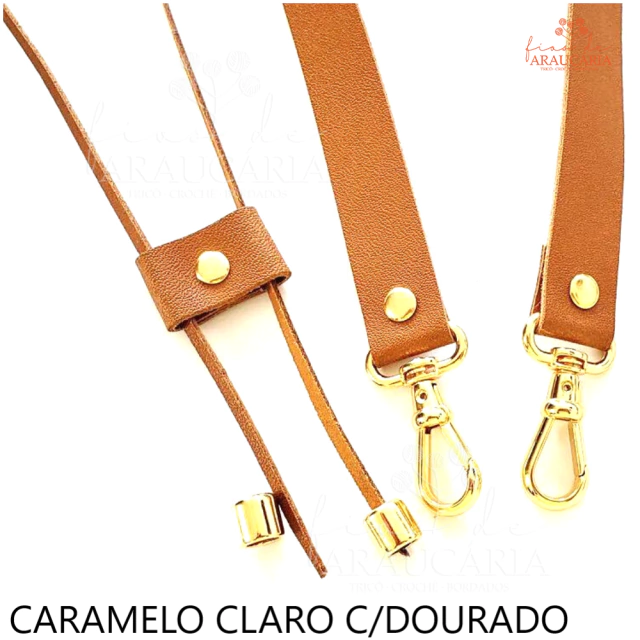 - 1 Kit de Alça + Enforcador de Couro Legítimo da CS Badulakes (cor do couro a escolher) METAIS EM DOURADO