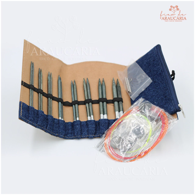 Kit de agulhas de tricô circulares intercambiáveis de madeira. A superfície lisa da madeira faz qualquer tipo de fio deslizar facilmente, sem diminuir o ritmo de tricô. Pontas lisas e afiladas. Nesse lindo estojo contém: