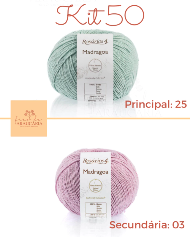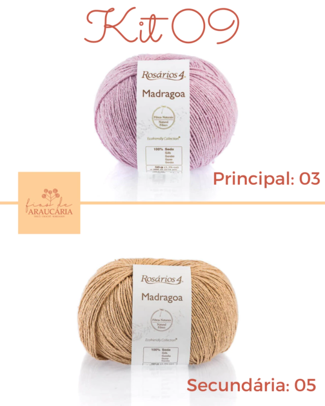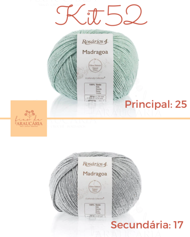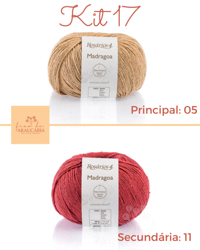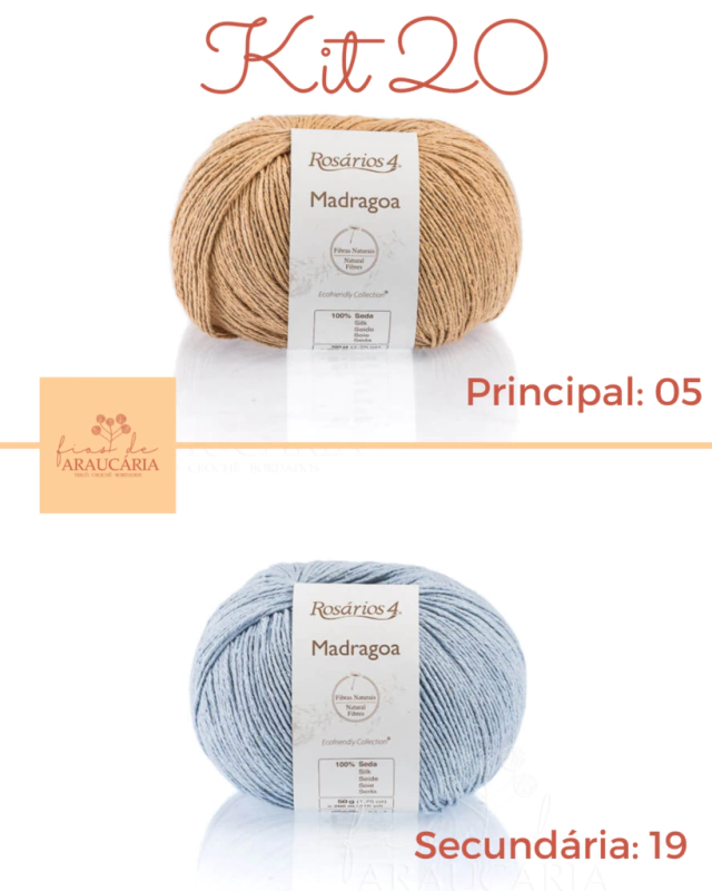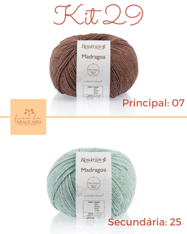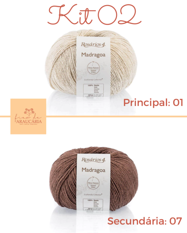 - 3 novelos da cor principal e 1 novelo da cor secundária do Fio Madragoa da Rosários4 (composição do fio - 100% Seda) - (cores contrastantes a escolher - criamos 54 lindas combinações!!!)