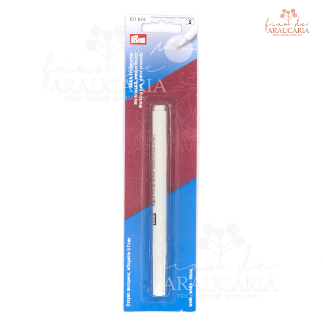 Ideal para uso em tecidos escuros, o marcador temporário Acqua Prym permite uma marcação fina e branca, que sairá assim que o tecido for lavado, ou que a marcação for esfregada com um pano limpo e úmido. Deve ser armazenado verticalmente com a tampa voltada para baixo para evitar que resseque.