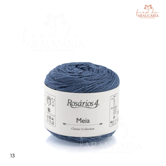 Fio de altíssima qualidade, produzido em Portugal. Com espessura um pouco maior que o de costume para fios de meias, auxilia muito o trabalho. Devido à mistura de lã com poliamida, esse fio garante maior resistência para sua peça.