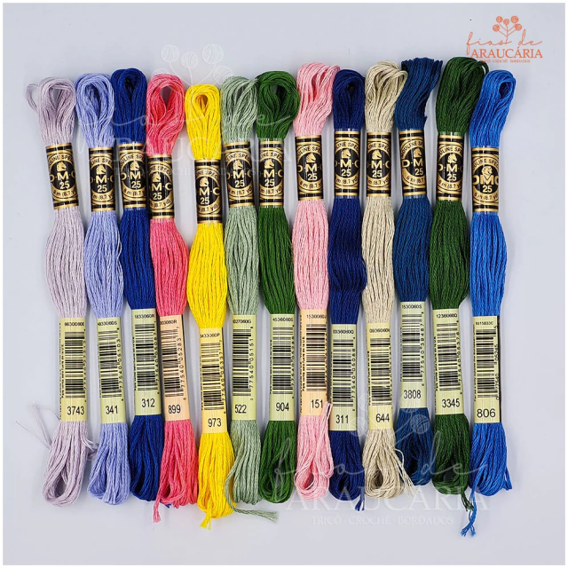 Meada composta por 6 fios que podem ser usados juntos ou separados, alcançando a espessura desejada para diferentes trabalhos. Produzido na França, cada meada mede 8 metros e sua composição é 100% algodão. Fio nobre para ser utilizado em várias técnicas de bordados em geral e vários tipos de artesanatos.