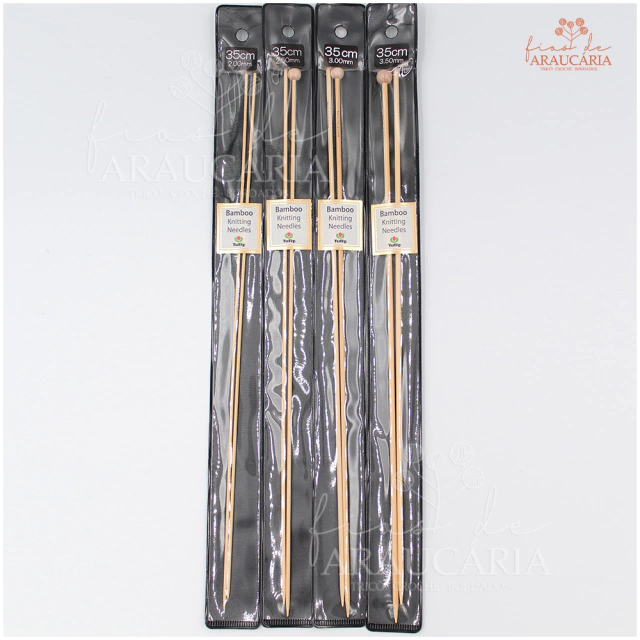 Par de Agulhas Retas para Tricô 35cm Bambu (3mm)